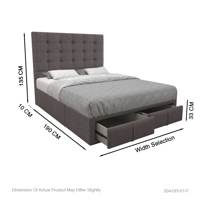 Luis Fabric Drawer Storage Bed with Drawer Front